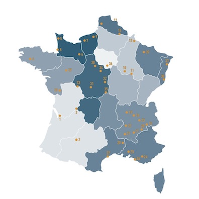 Carte des sites nucléaires en France pouvant donner lieu à un accident (source : Plan national):